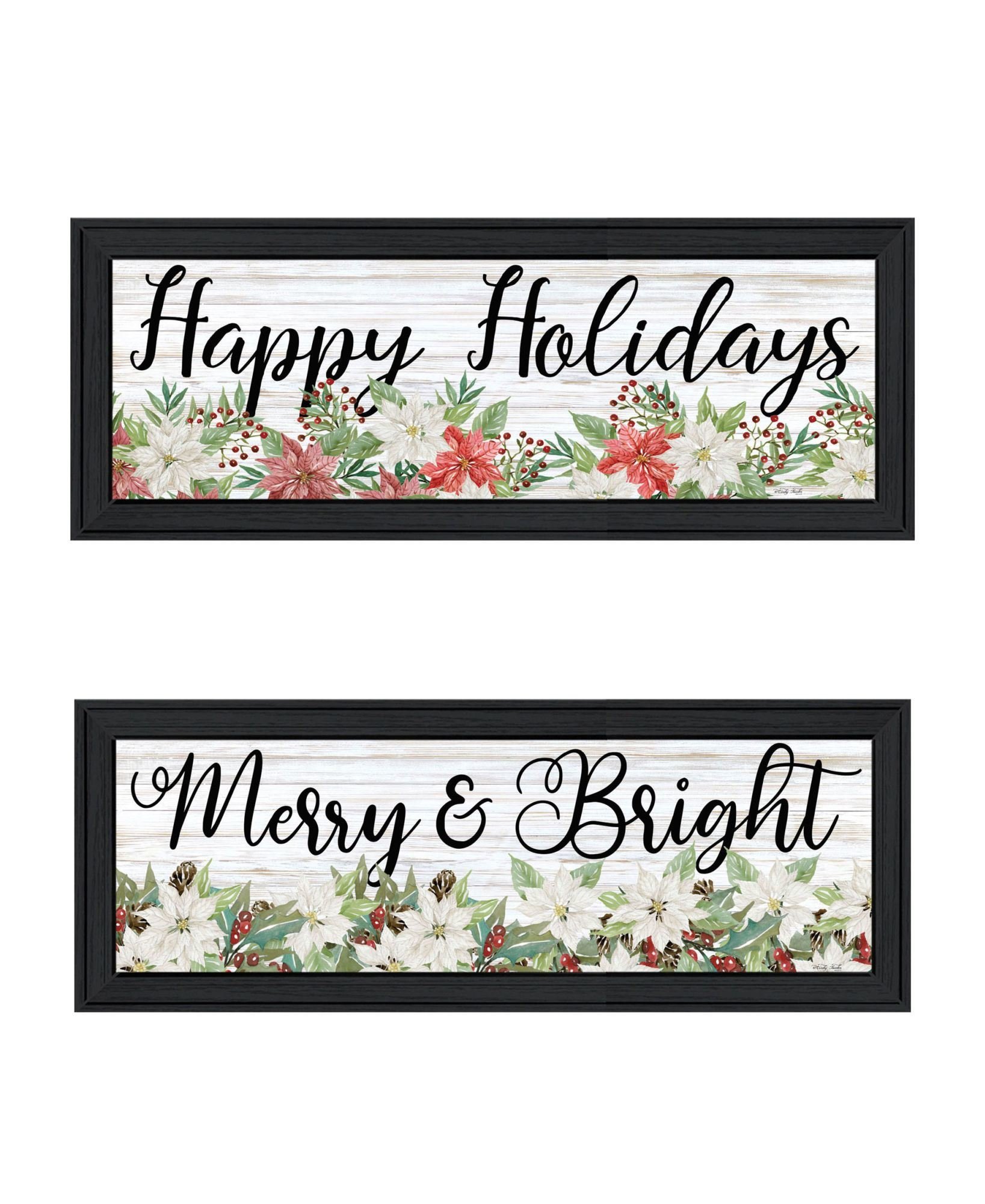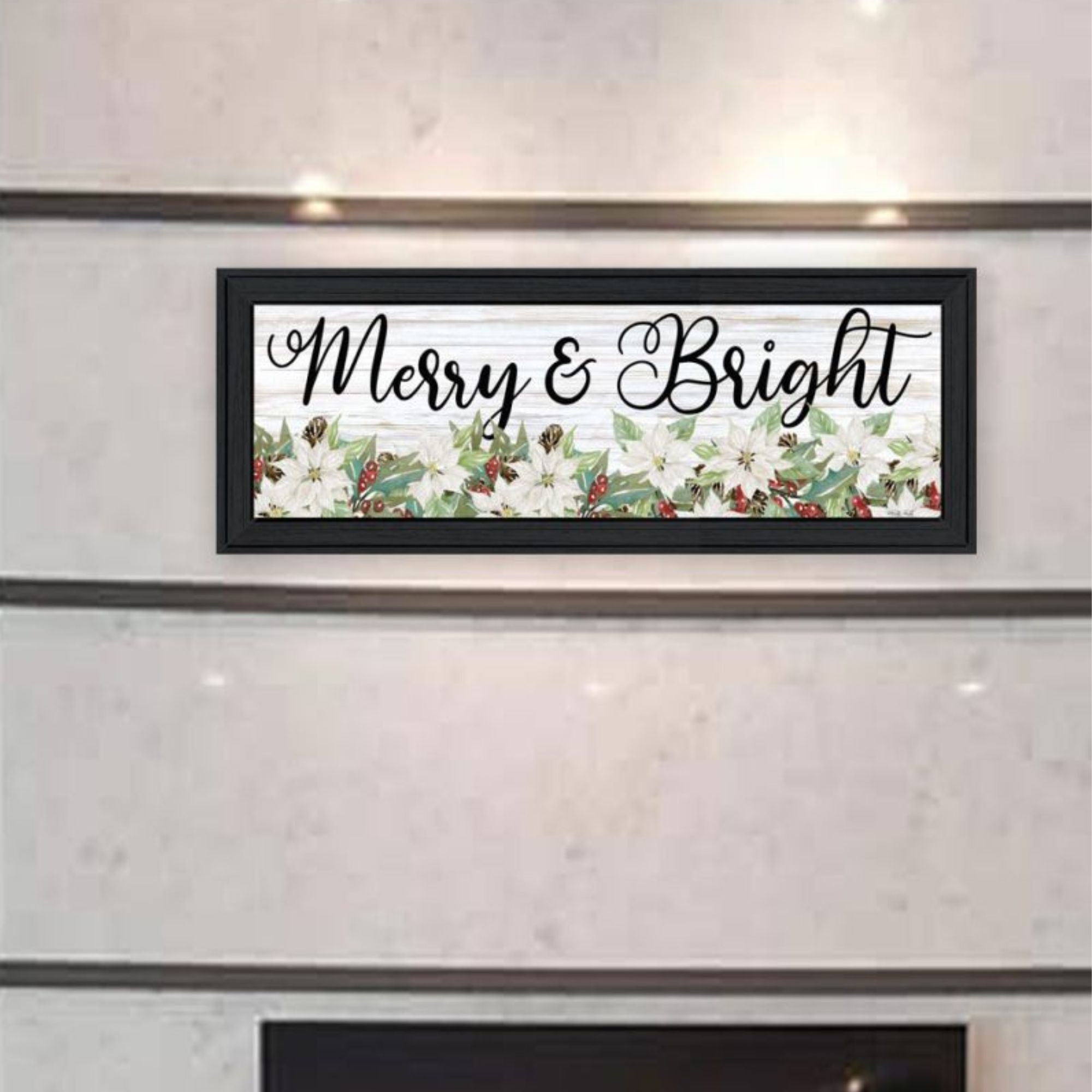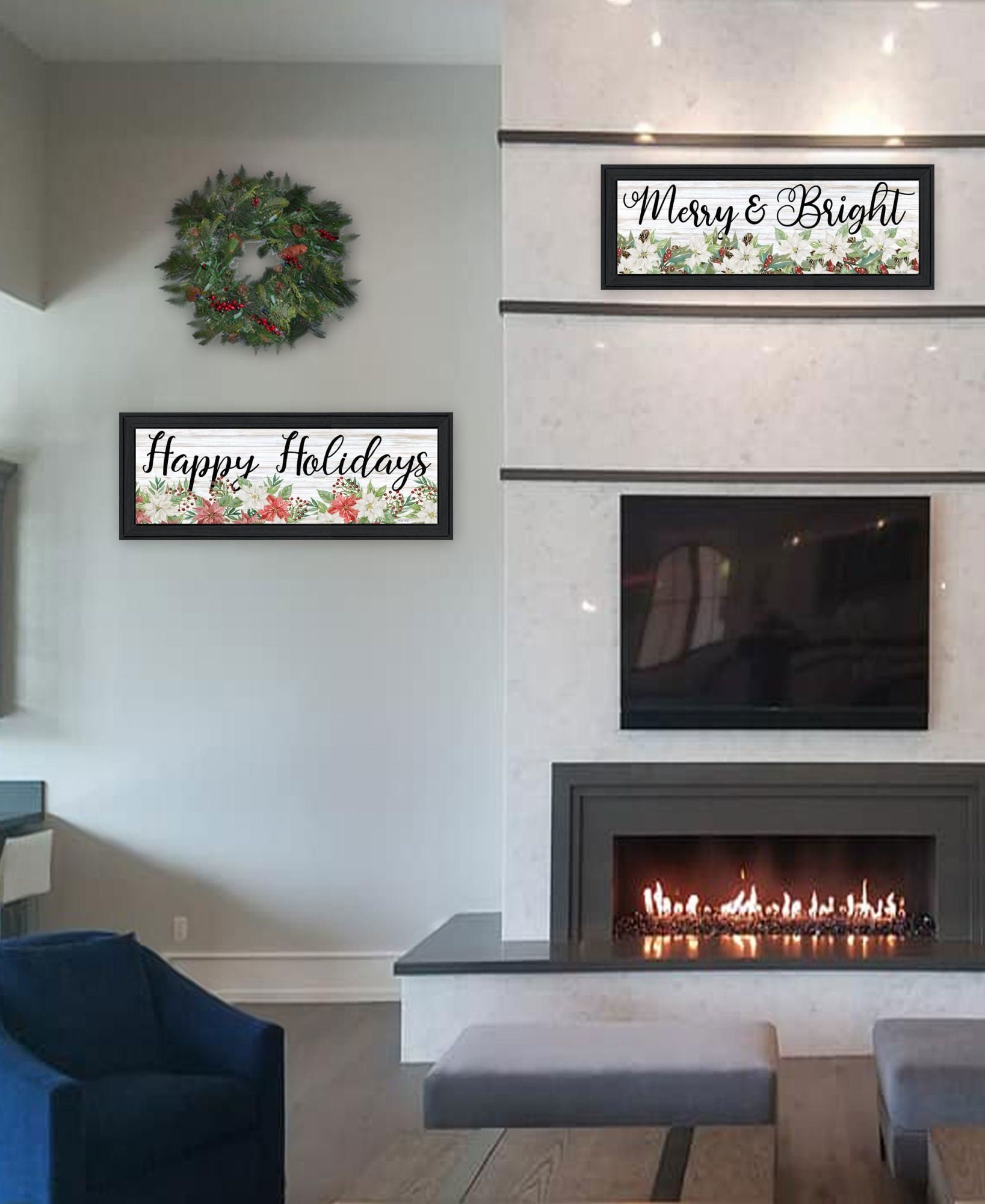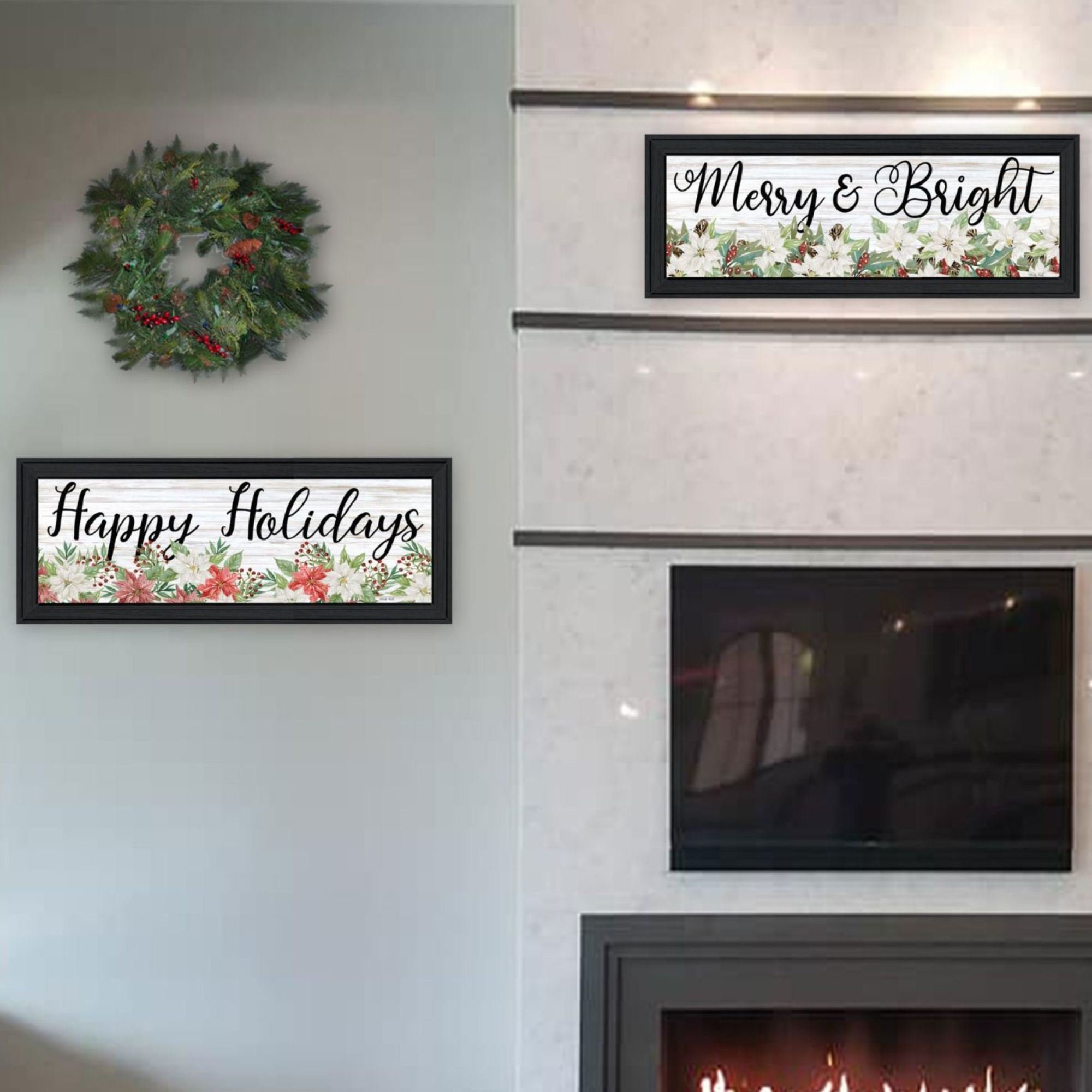 Trendy Decor 4U "Merry & Bright Holiday; Happy Holidays to YOU" Framed Wall Art for Living Room, Wall Art Print for Home Decor